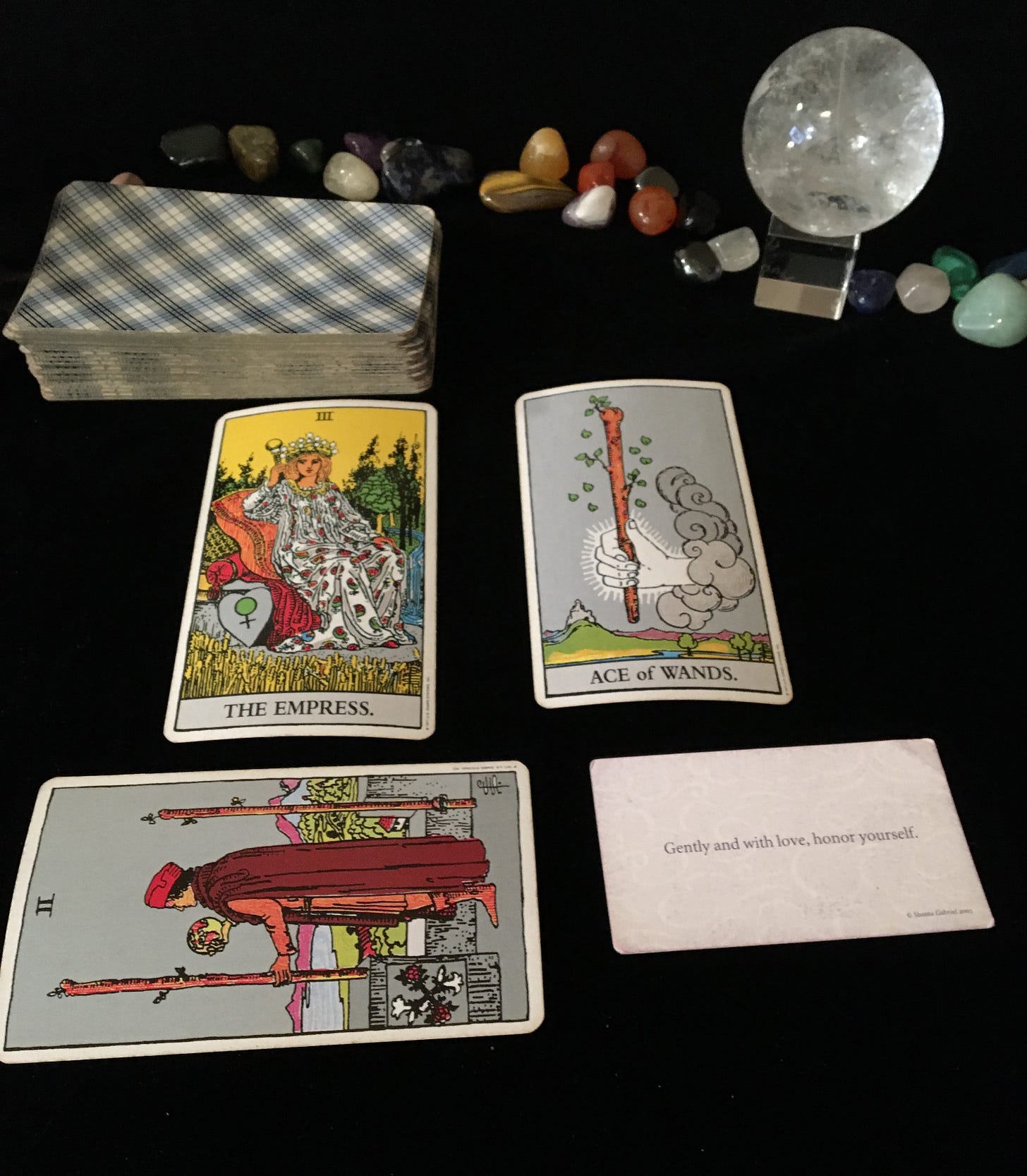 “Notice that empress is pregnant,” Eve says. “This is about fertility, but often it means that you need to give yourself permission to take the time to allow something very personal within you to grow and develop. You can’t rush this. Does that make sense?”