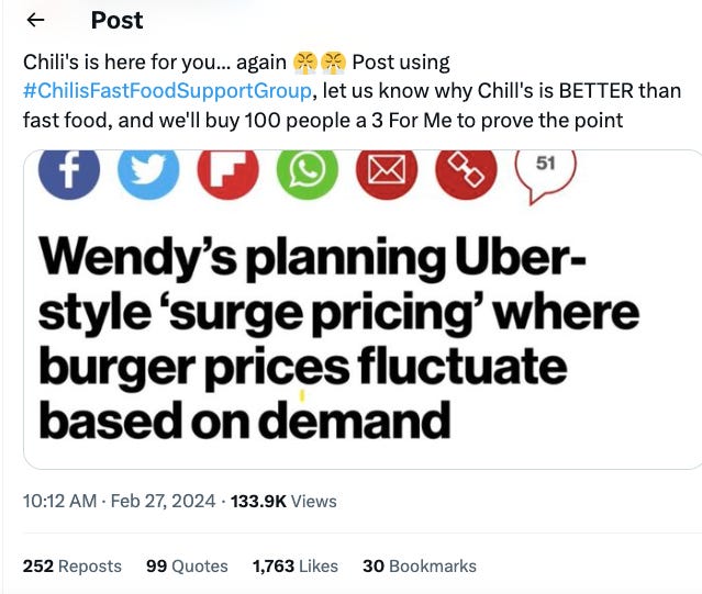 Meanwhile, the chill people at Chili’s took advantage with their special blend of empathy and snark.