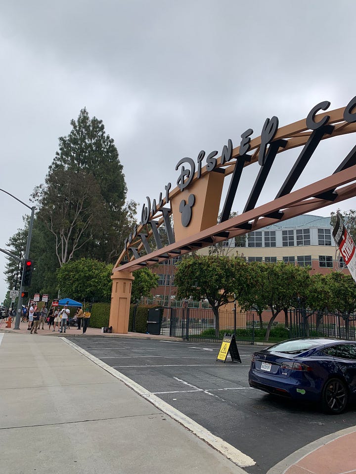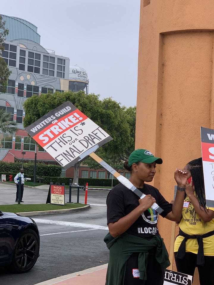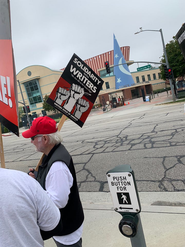 Obviously, this post is an example of solidarity action item number one. Work is a little slow for me at the moment, so I’m skipping option two (for now). But I’ve got time, and I need to get my steps in, so this week I joined Chris at Walt Disney Studios in Burbank to walk the WGA picket line. Good times!